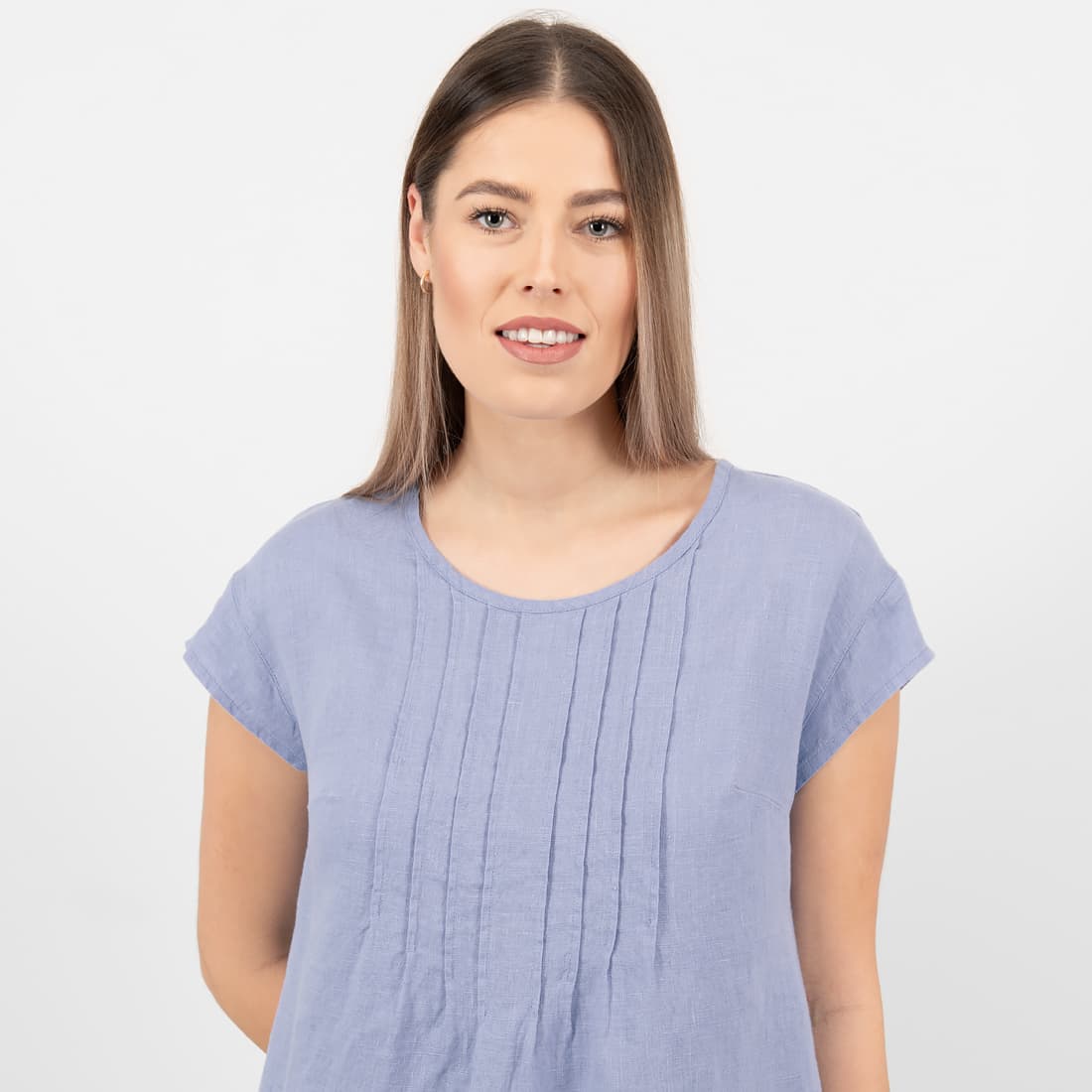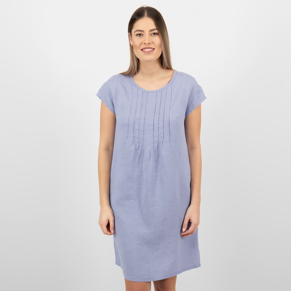 • MIREN taivaansininen pellava mekko, pyöreä pääntie