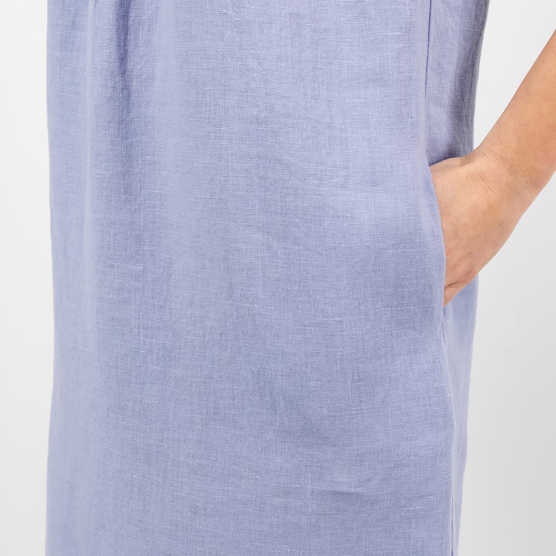 • MIREN taivaansininen pellava mekko, jossa on taskut