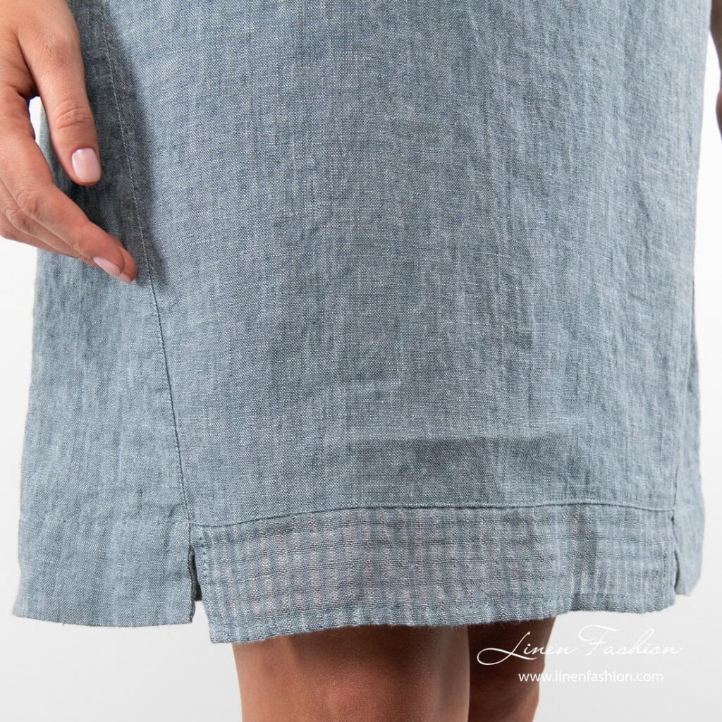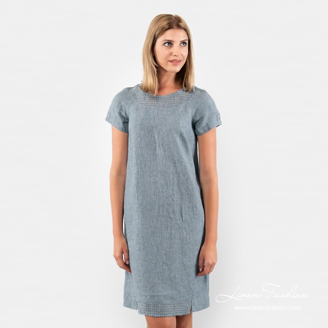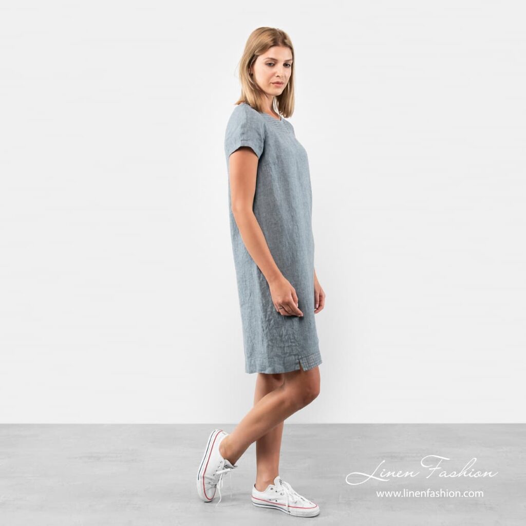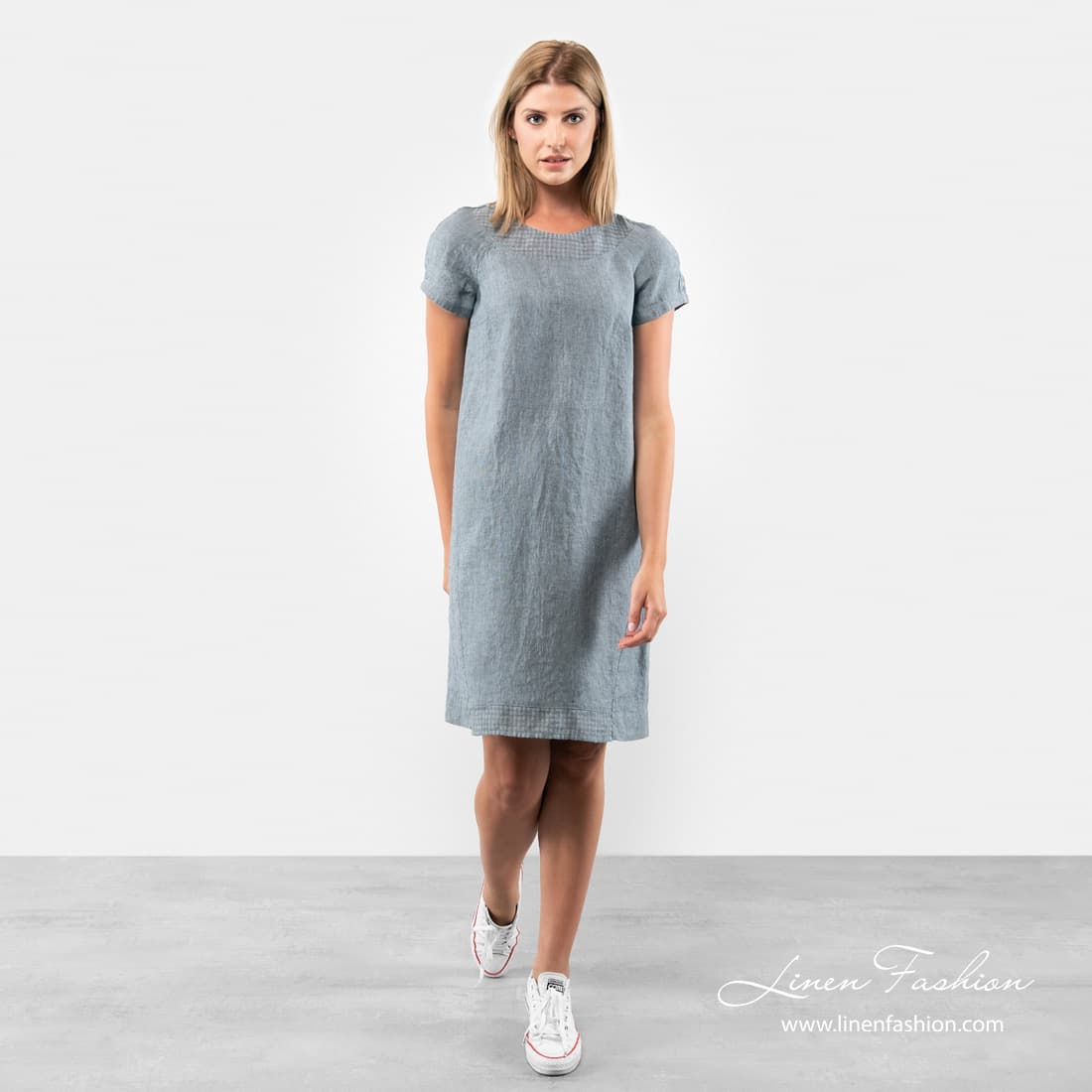PROVENCE harmaa pellavamekko on valmistettu tumman- ja vaaleanharmaasta melange-kankaasta, jossa on hieman sinertävä sävy. Täyspellavainen suora mekko on täydellinen vapaa-aikaan, sillä se on tyyliltään rento, väljä ja mukava.
