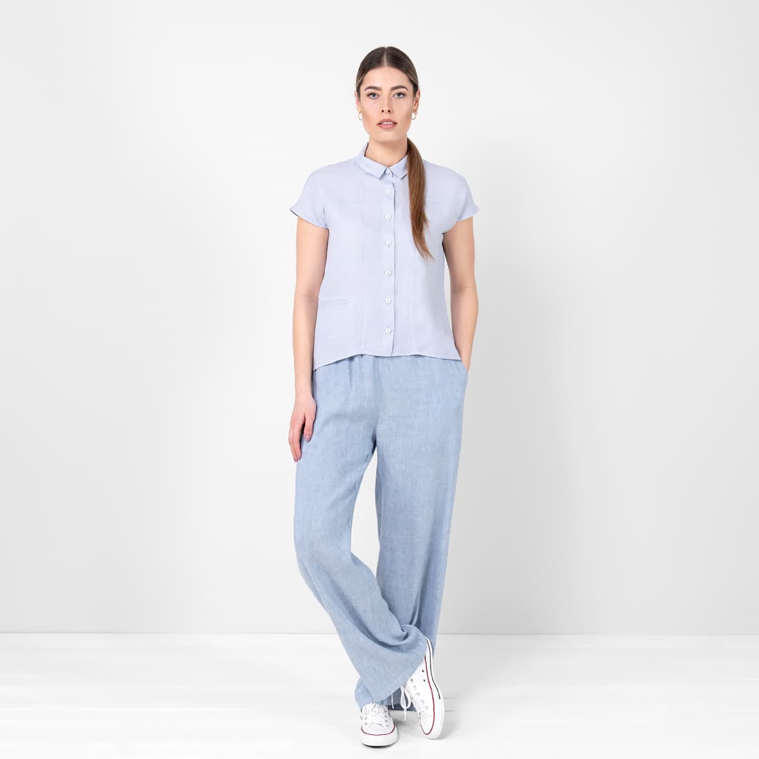 • Yksityiskohdat: lyhyet hihat, paidankaulus, pitkä nappikiinnitys, pieni tasku oikealla