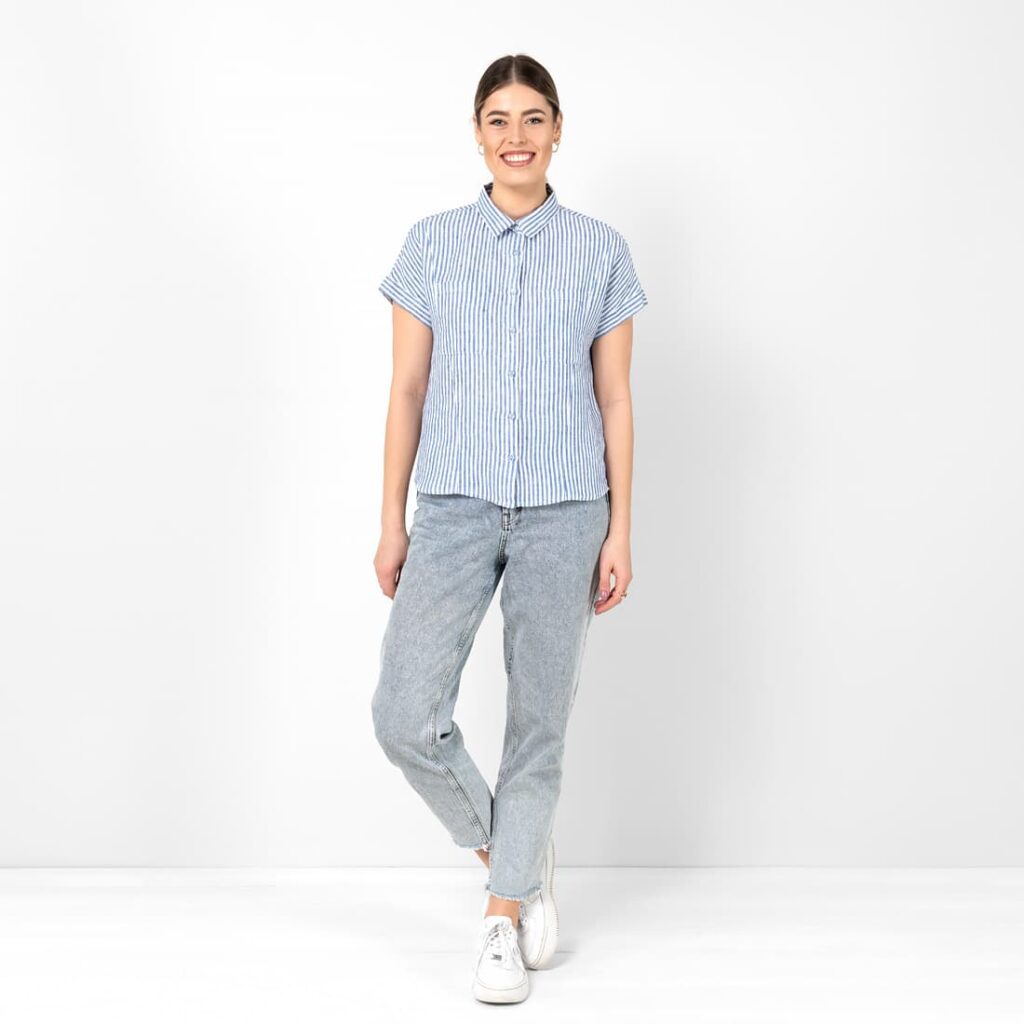 - Tuotemalli: paitamalli, suora siluetti, lantionpituinen, lyhyet hihat