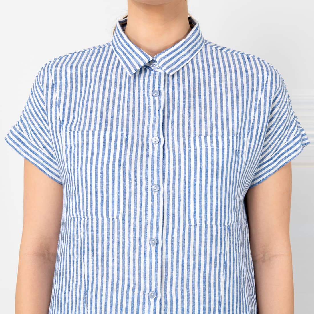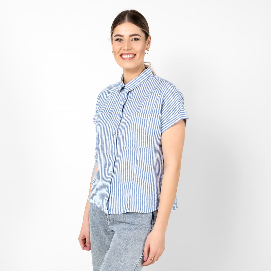 - Yksityiskohdat: klassinen paitakaulus, nappikiinnitys edessä, kaksi taskua