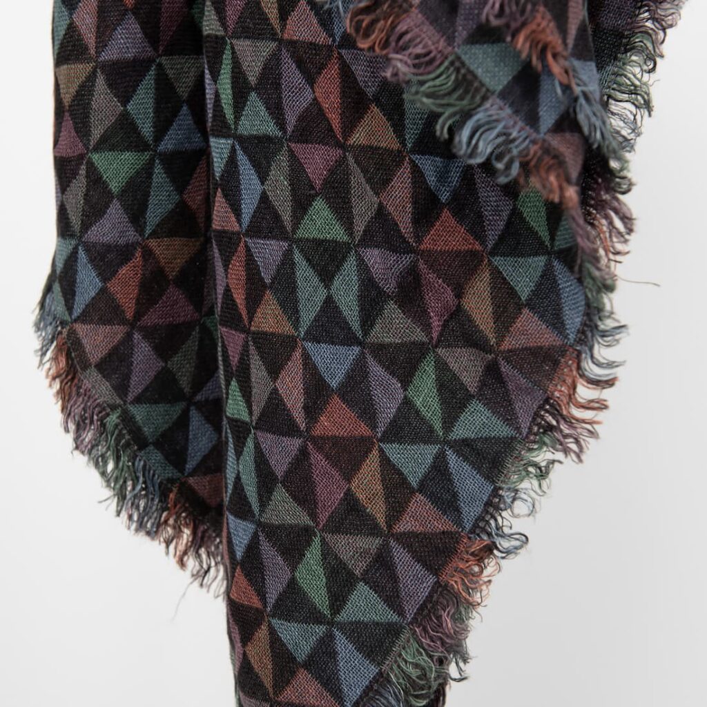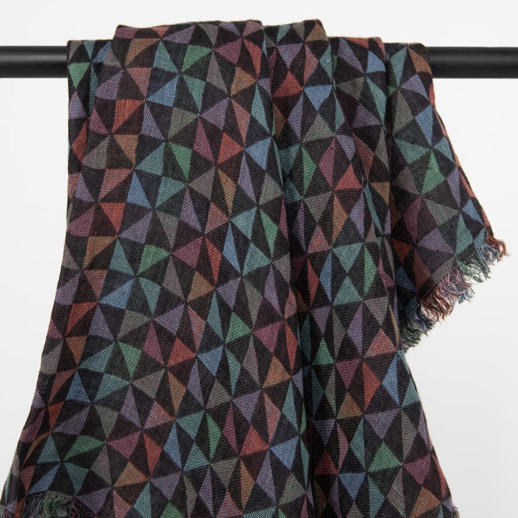 - Kuosi: kaksikerroksinen jacquard geometrisella kolmiokuviolla