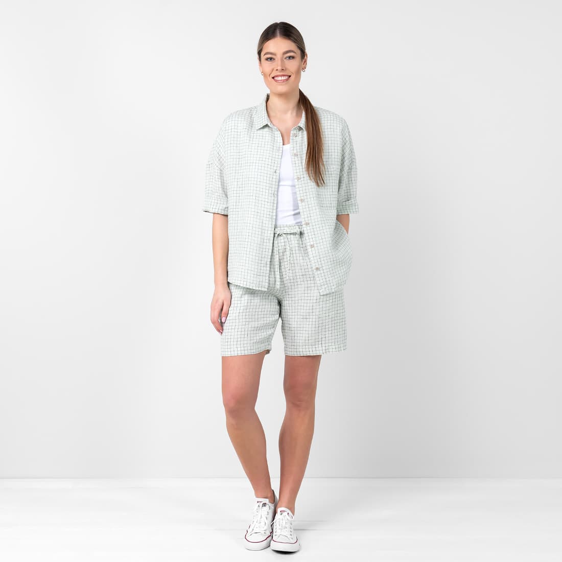 • DOLFI pellava vihertävät-musta shortsit ruutukuvio