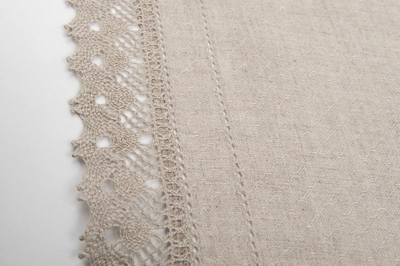 - Viimeistely: luonnonharmaa pitsireunus, kaksinkertainen reikäommel