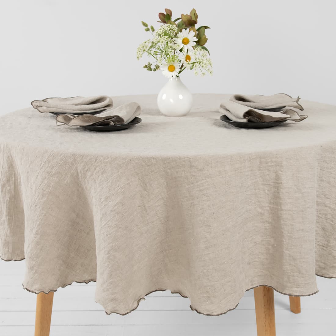 Huomautus: Olemme käyttäneet tämän kankaan valmistuksessa luonnollista, värjäämätöntä (luonnonharmaata) pellavalankaa. Luonnonharmaa väri voi olla joka kerta erilainen (tämä riippuu pellavan kasvuolosuhteista), joten tilaamasi kangas voi poiketa hieman kuvasta. Väripoikkeamia voi esiintyä myös uusintatilauksissa. Tuote on valmistettu pestystä kankaasta, joten sen koko voi hieman vaihdella.