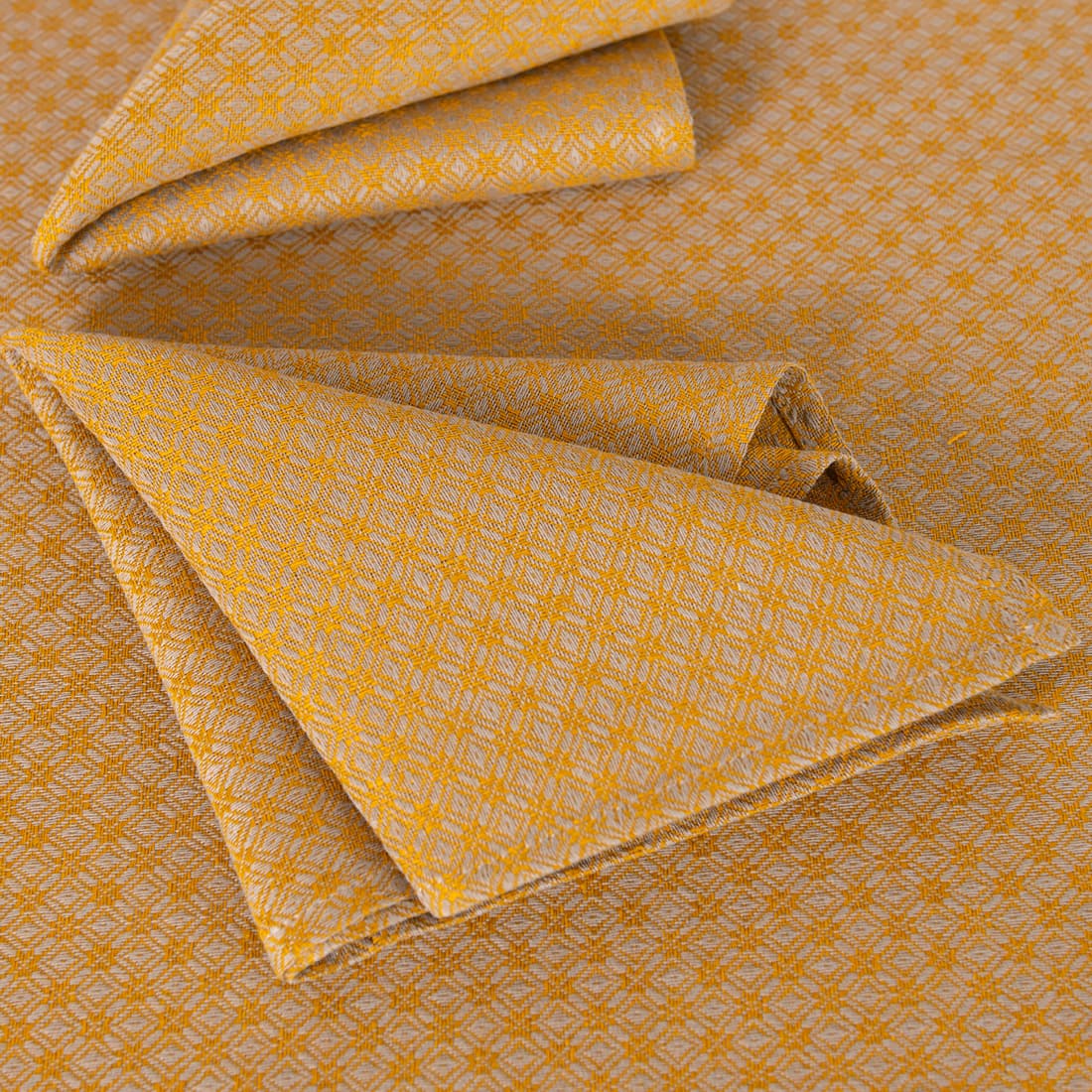 • Puolipellava keltainen-beige lautasliina, timantteja, joissa on pieniä kukkia