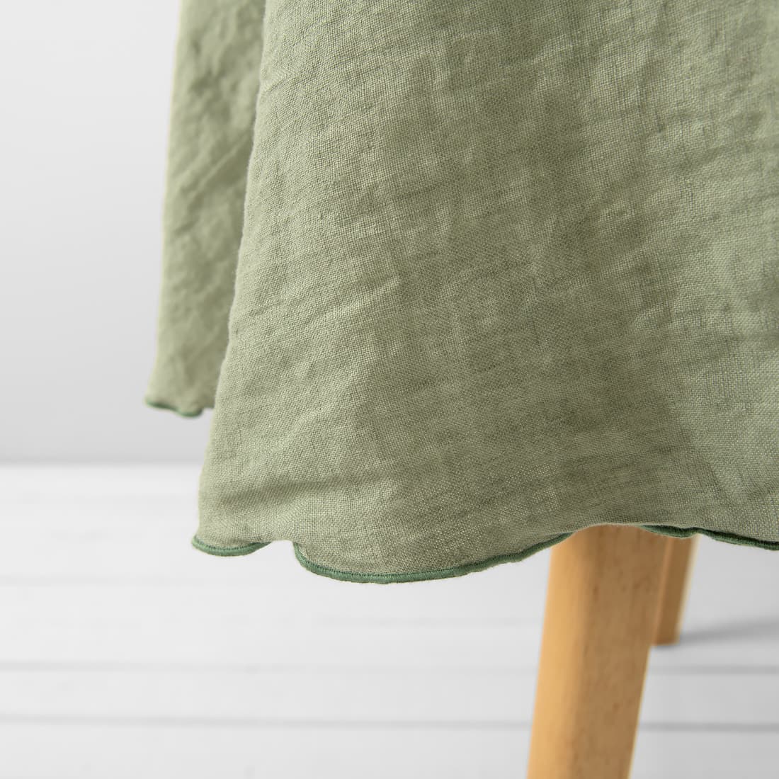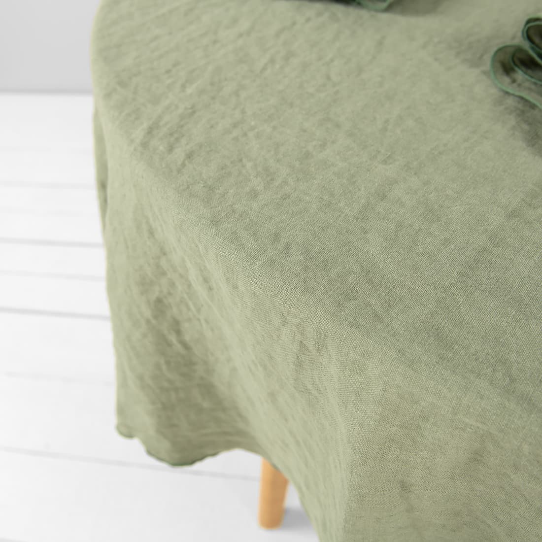• Pyöreä vaaleanvihreä pellava pöytäliina