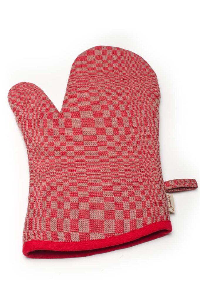 Väri: tummanbeigen ja punaisen langan sekoitus