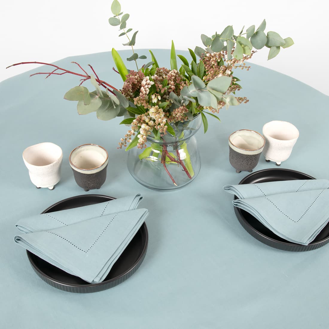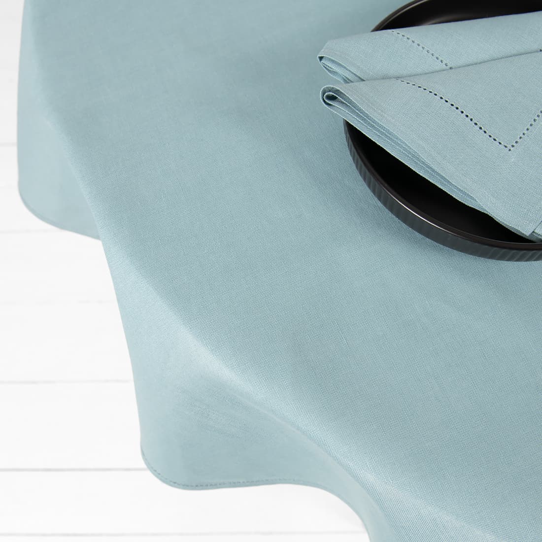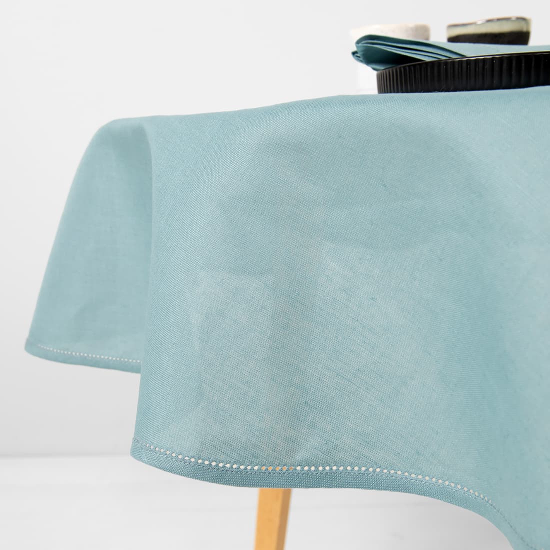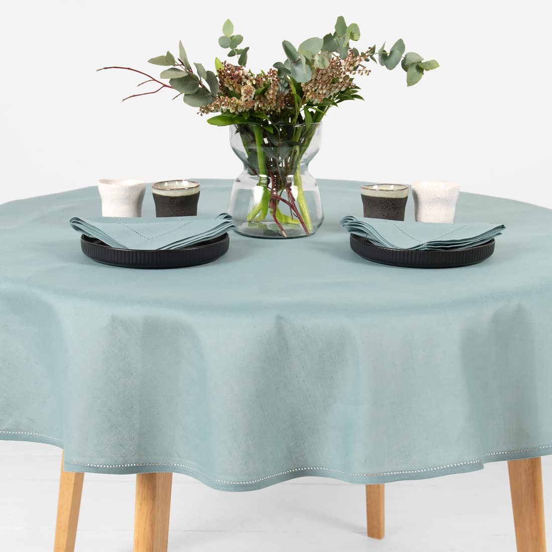 • pellava puuvilla pyöreä ovaali aqua pöytäliina