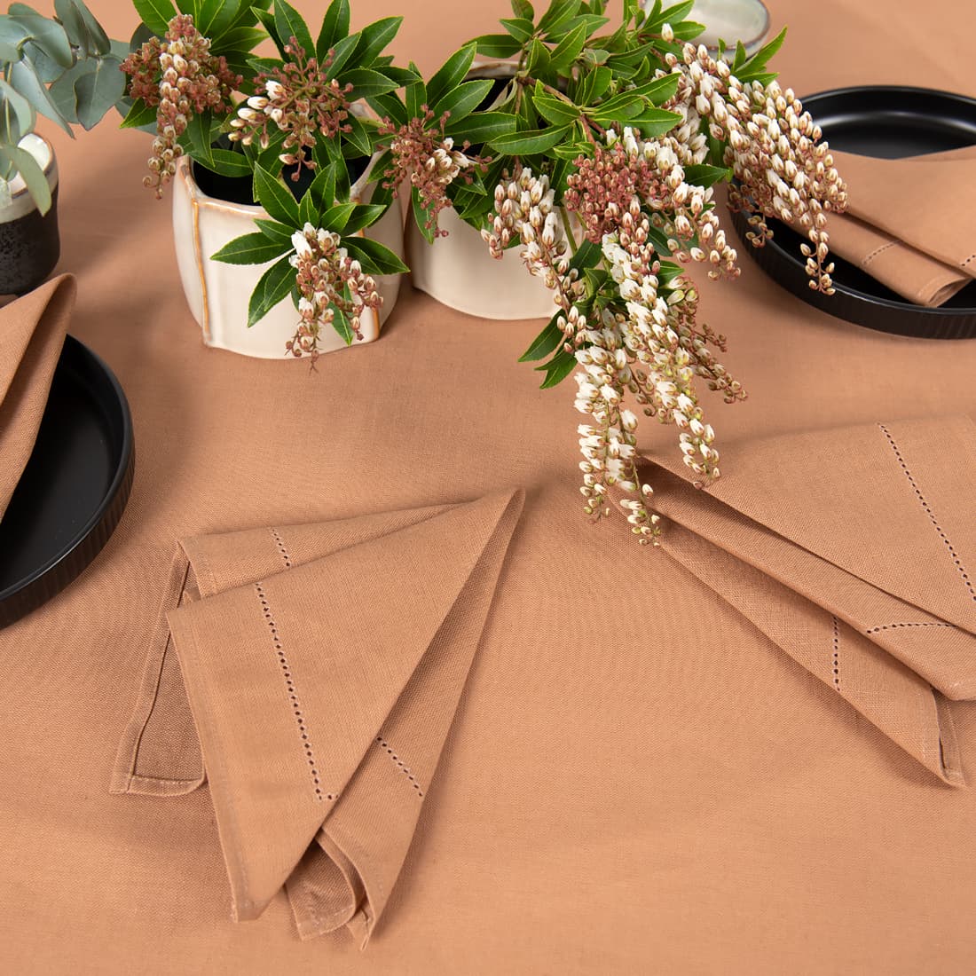• pellava puuvilla pyöreä soikea soikea vaaleanruskea pöytäliina