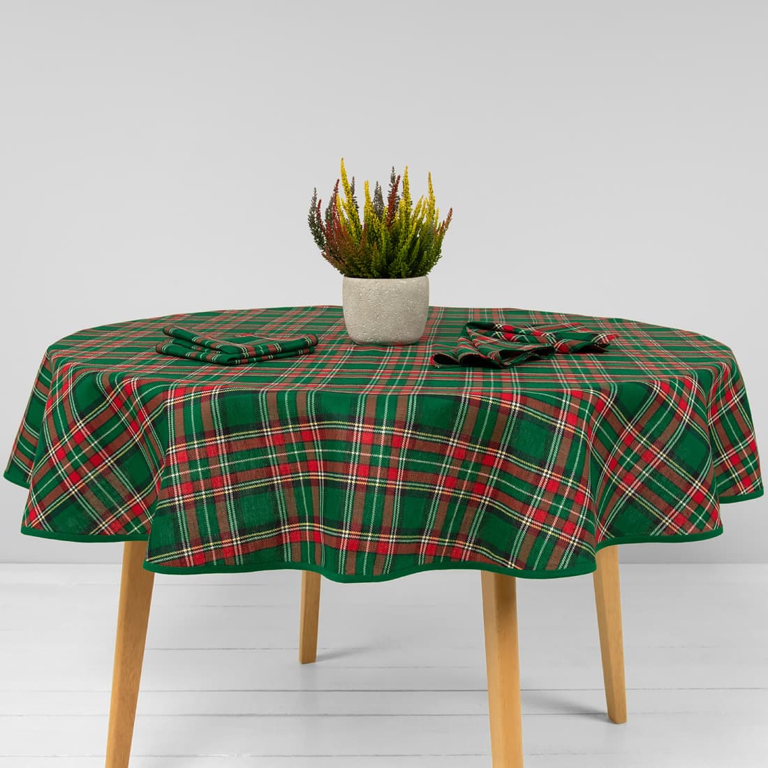 • SCARLET pyöreä ovaali vihreä ruudullinen pöytäliina
