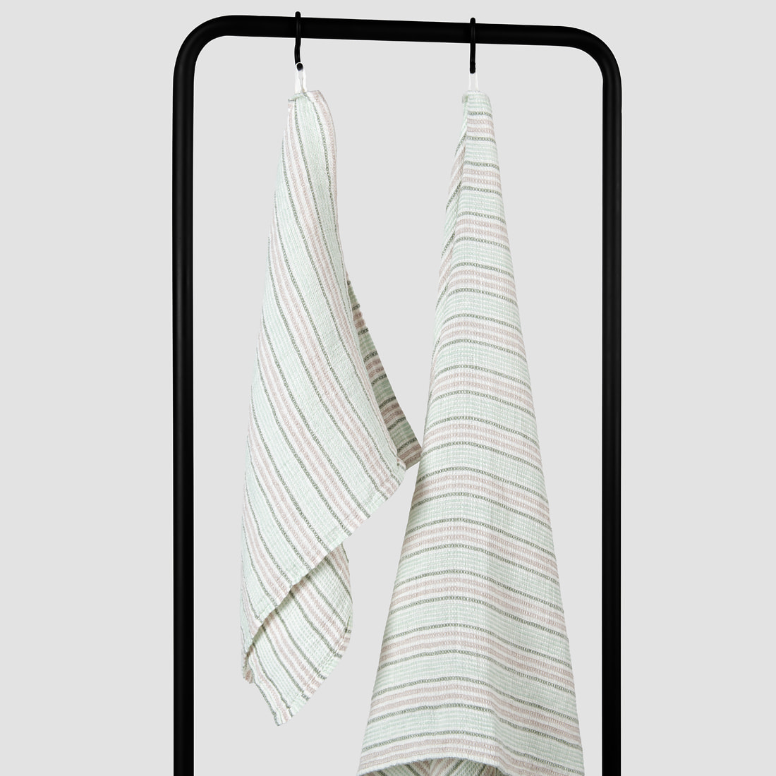- Väri: valkoinen pohja harmailla, vaaleanvihreillä raidoilla