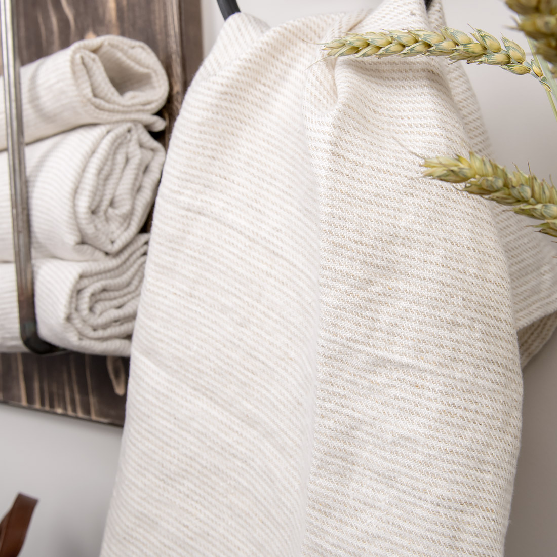 Huomautus: Olemme käyttäneet tämän tuotteen kankaaseen luonnonharmaata, värjäämätöntä pellavalankaa. Luonnonharmaa väri voi olla joka kerta erilainen (tämä riippuu pellavan kasvuolosuhteista), joten tilaamasi tuote voi poiketa hieman kuvasta. Myös uusintatilauksen yhteydessä voi esiintyä väripoikkeamia. Tuote on valmistettu pestystä kankaasta, joten sen koko voi hieman vaihdella.