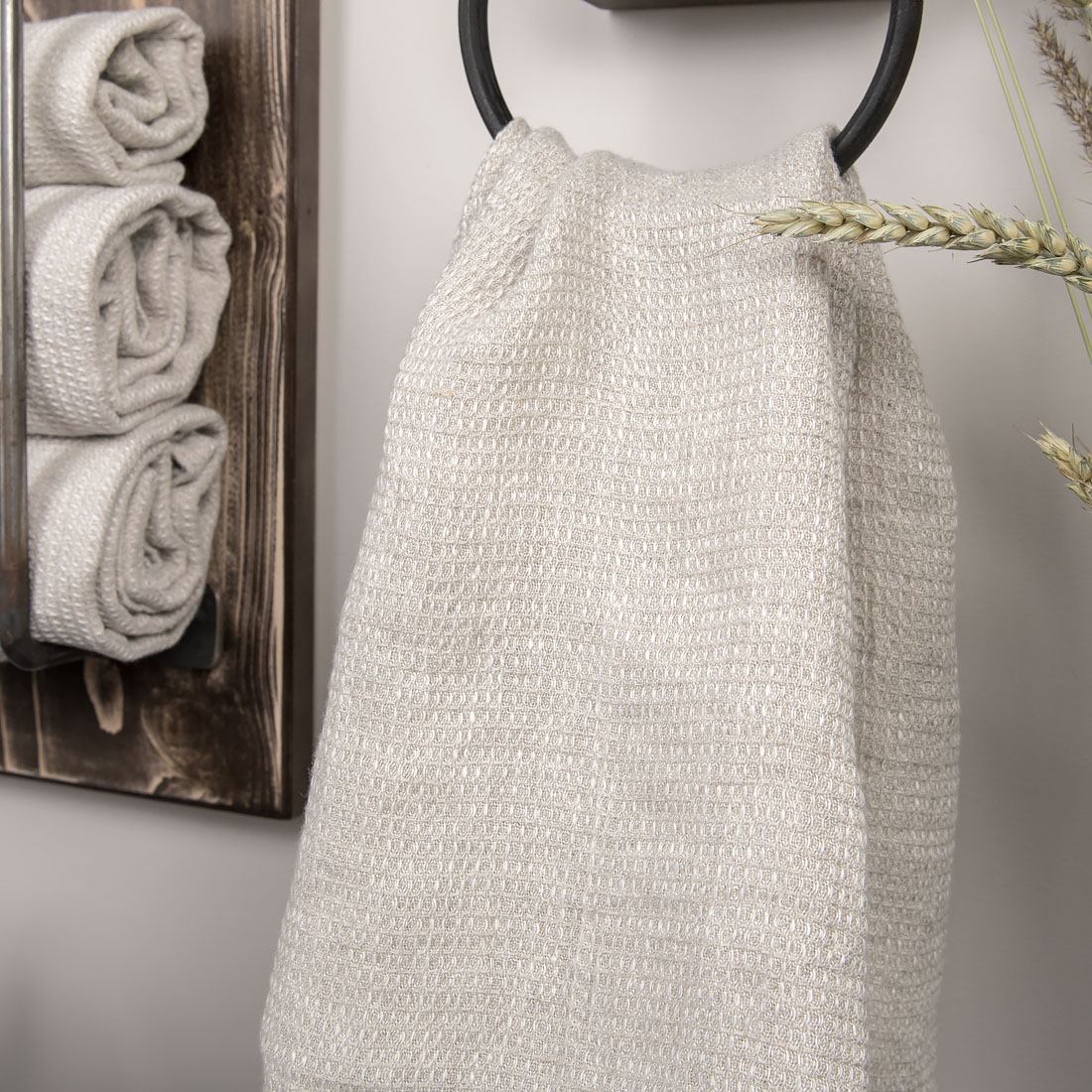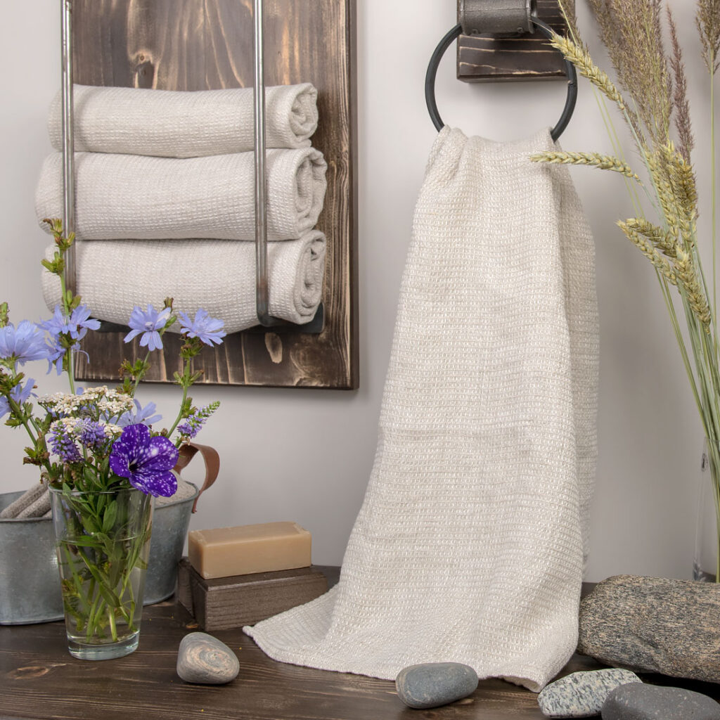 - Väri: valkoisen ja luonnonvärisen (värjäämätön, ruskeanharmaa) pellavalangan sekoitus