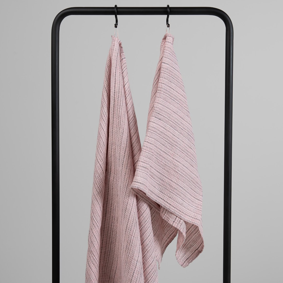 • Pellava pyyhe vaaleanpunainen raidallinen pehmeä, joustava