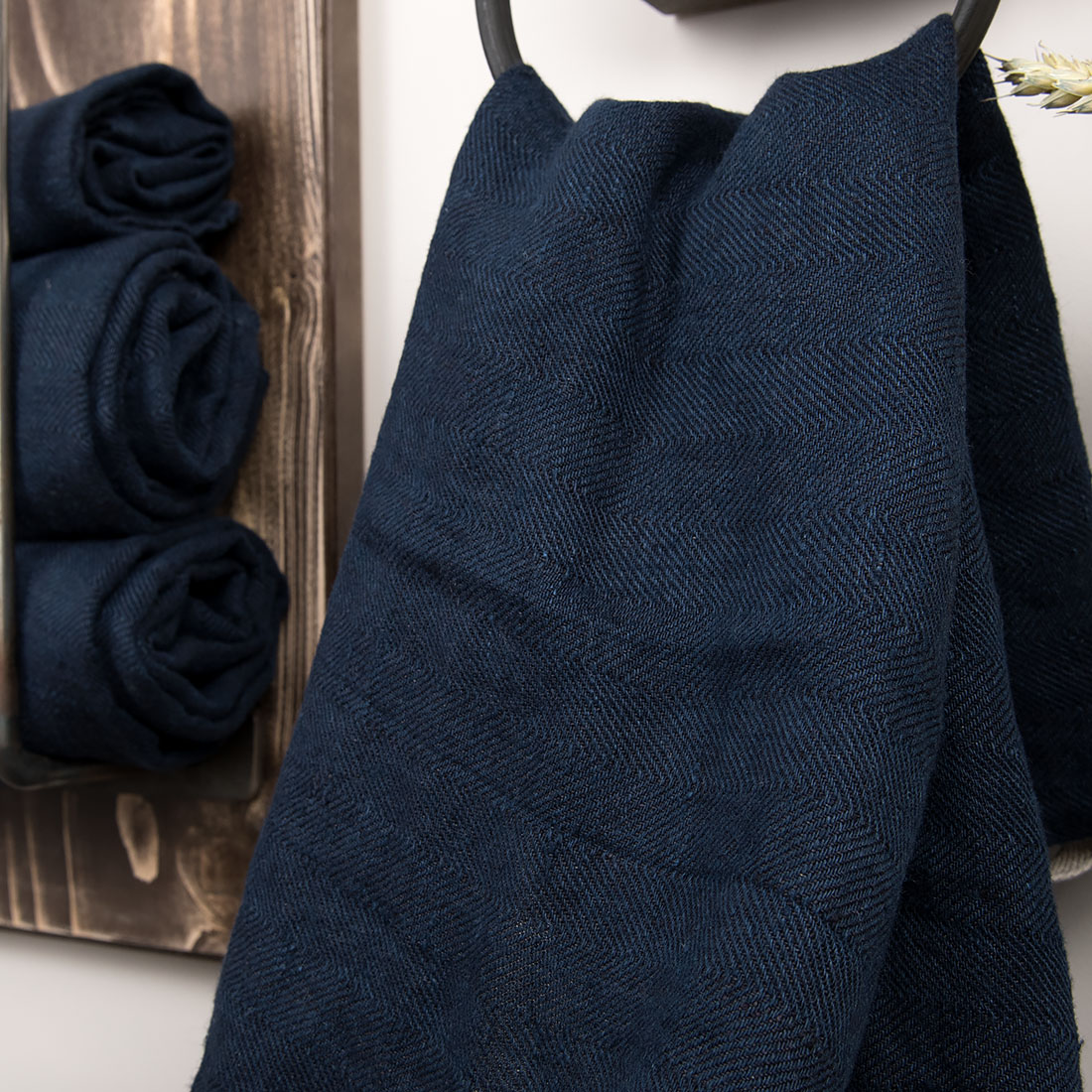 • Pellava pyyhe tummansininen kalanruotokudos pehmeä joustava