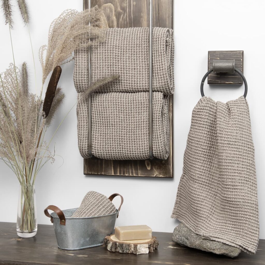 - Yksityiskohdat: ripustuslenkki, kahden pyyhkeen setti on sidottu leveällä nauhalla