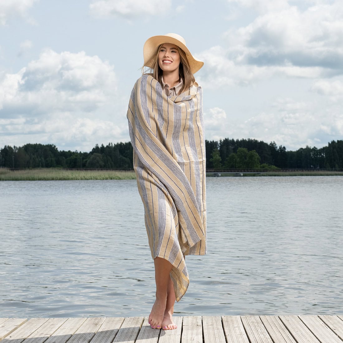 • DAKOTA rantapyyhe sininen raidallinen