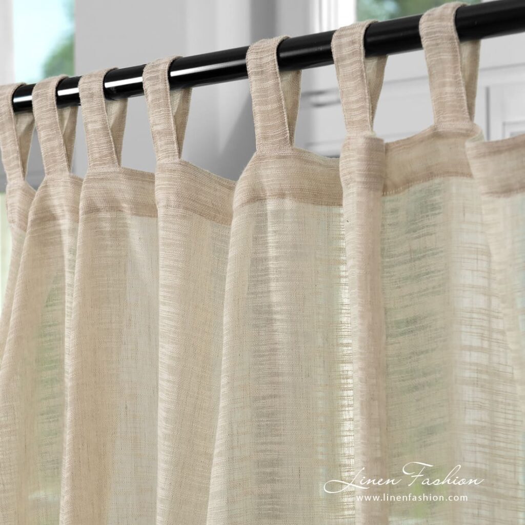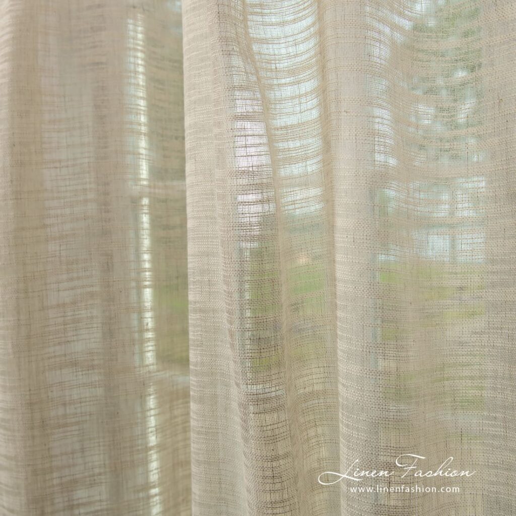 - Väri: luonnonvärinen (värjäämätön) pellava ja valkoiset efektilangat, jotka antavat kankaalle koristeellisia epäsäännöllisyyksiä ja katkoksia